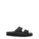 The product with MPN PWIH010LEA0011001 and code F76760 leather in black is a sandals designed by Palm Angels. It has features like front logo.