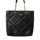Black Leather JUNGLE Quilted Shopping Tote Bag