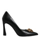 Black Leather Logo Plaque High Heels Pumps Shoes