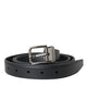 Black Leather Silver Metal Buckle Men Belt