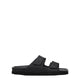The product with MPN PMIH005LEA0011001 and code F77119 leather in black is a slippers and clogs designed by Palm Angels. It has features like front logo.