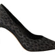 Black Leopard Leather Stiletto High Heels Pumps Shoes