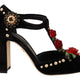 Gorgeous brand new with tags, 100% Authentic Dolce & Gabbana Elastic velvet t-strap mary jane pumps vally embellished with roses, crystals and studs and crystals brooch.