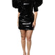 Black Patent Leather Puff Sleeves Mini Dress