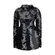 The Short Sequin Dress by Sportmax is crafted from jersey embroidered with dégradé sequins that create a luminous, dynamic surface effect. The design features a raised collar with an invisible back zip, kimono sleeves, and a construction with darts and shaped side panels that define the waist and soften the hips. Both fitted and fluid, it reflects the Maison’s ability to merge sartorial precision with the vibrancy of light, turning an evening dress into a statement of contemporary elegance.