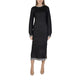 The Vila Clothes VISONJA MIDI BODYCON MIDI KNIT DRESS /KA is the perfect choice for women seeking both elegance and comfort. Crafted from a high-quality blend of 54% polyester, 36% acrylic, 8% wool, and 2% elastane/lycra, this dress offers a snug fit and a soft feel against the skin. The bodycon design enhances the feminine silhouette, while the midi length adds a sophisticated touch suitable for various occasions, from work to leisure. Long sleeves and ribbed edges with a contrasting pattern create a contemporary style detail, and the side slit at the hem ensures freedom of movement and a modern flair. Ideal for pairing with both elegant shoes and ankle boots, this dress is a must-have for the autumn and winter seasons.