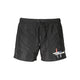 short swim boxer, 2 pockets, 1 back pocket, inside with briefs, laces, print, logo