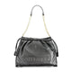 BAG 1 CHAIN SHOULDER HANDLE, ADJUSTABLE AND REMOVABLE SHOULDER STRAP, 1 INTERNAL POCKET, INTERNAL PHONE HOLDER SPACES, ZIP AND DRAWSTRING CLOSURE, APPLICATION, LOGO
