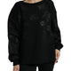 Black Pullover Floral Logo Applique Sweater