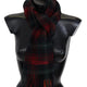 Black Red Check Wool Unisex Neck Wrap Fringes Scarf