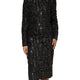 Gorgeous brand new, 100% Authentic Dolce & Gabbana midi dress is cut from textured bouclé tweed inlaid with shimmering micro sequins, featuring long sleeves and a subtly draped bodice.