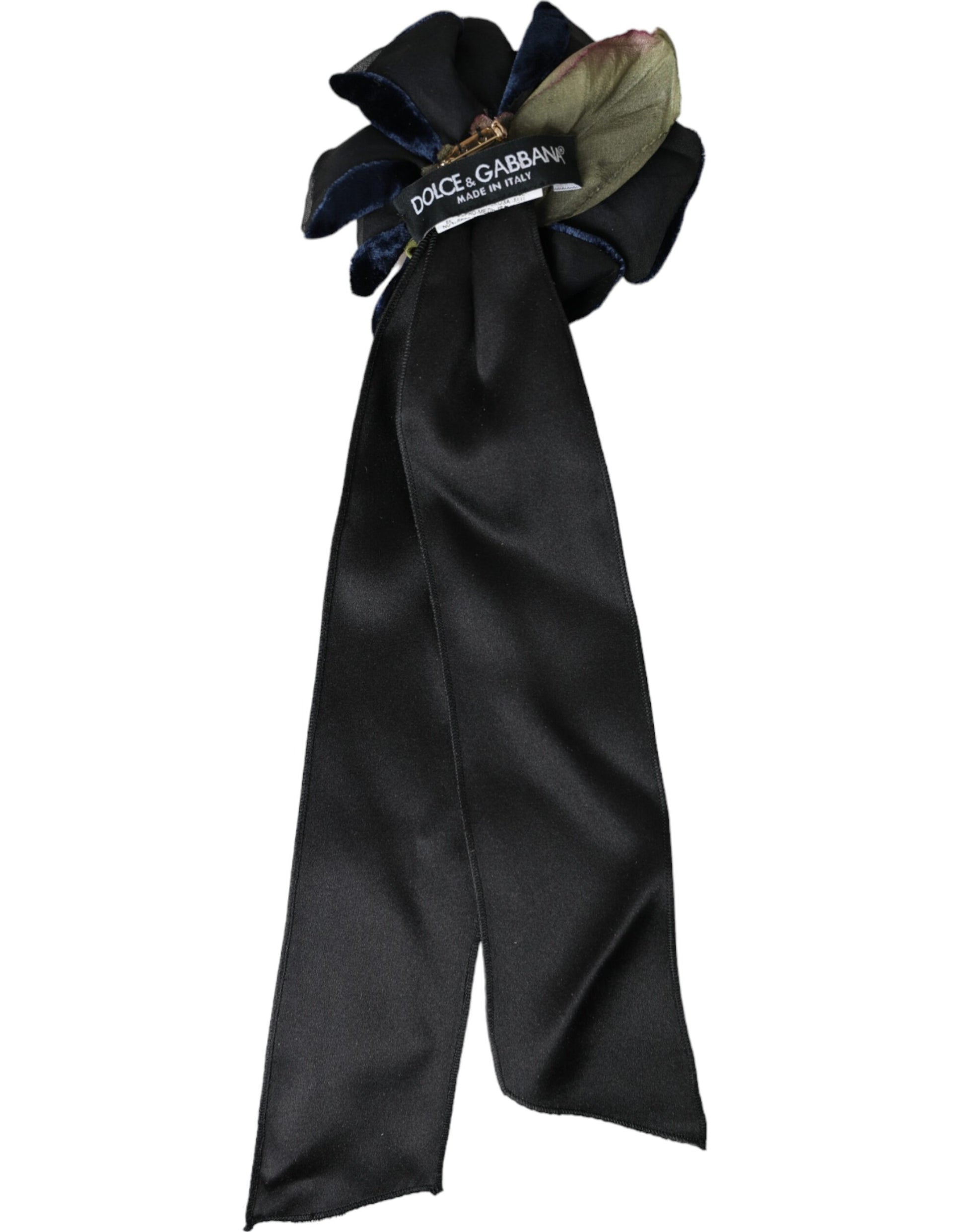 Black Silk Gold Brass Floral Hair Pin Brooch