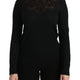 Black Silk Lace Crew Neck Long Sleeve Blouse