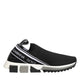 Sorrento sneakers showcase the brand’s signature sporty-luxe aesthetic. Crafted from stretch mesh in a striking black-and-silver palette, they feature a slip-on design with logo detailing across the vamp and heel. The lightweight rubber sole ensures comfort and flexibility, while the bold silhouette adds a modern, streetwear-inspired edge to any outfit.