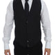 Black Striped Wool Single Breasted Vest