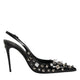 Black Studded Leather Heels Slingbacks Shoes