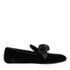Black Suede Cotton Rose Slip On Loafers Shoes
