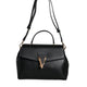 Black Top Handle Grainy Calfskin Leather Crossbody Bag