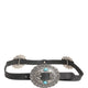 Black Turquoise Leather Embellished Oval Buckle Belt