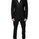 Black color Single breasted 3 piece suit; includes blazer vest and pants Two button closure on blazer 90% Virgin Wool 8% Silk 2% Polyester material 100% Viscose lining Slim fit Inside pockets in blazer One open vent in the back of blazer Vest has full button closure and adjustable strap back 3 way zipper closure on pants Made in Italy Very exclusive and high craftsmanship Size on Tag: IT50 | L