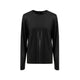 Long-sleeved sweater in stretch viscose with a slightly shiny finish. It features a round neck and a full-length zip back closure. The soft fabric ensures a loose fit. Composition: 95% viscose, 5% elastane.