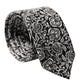 Black White Floral Fantasy Silk Adjustable Necktie Tie