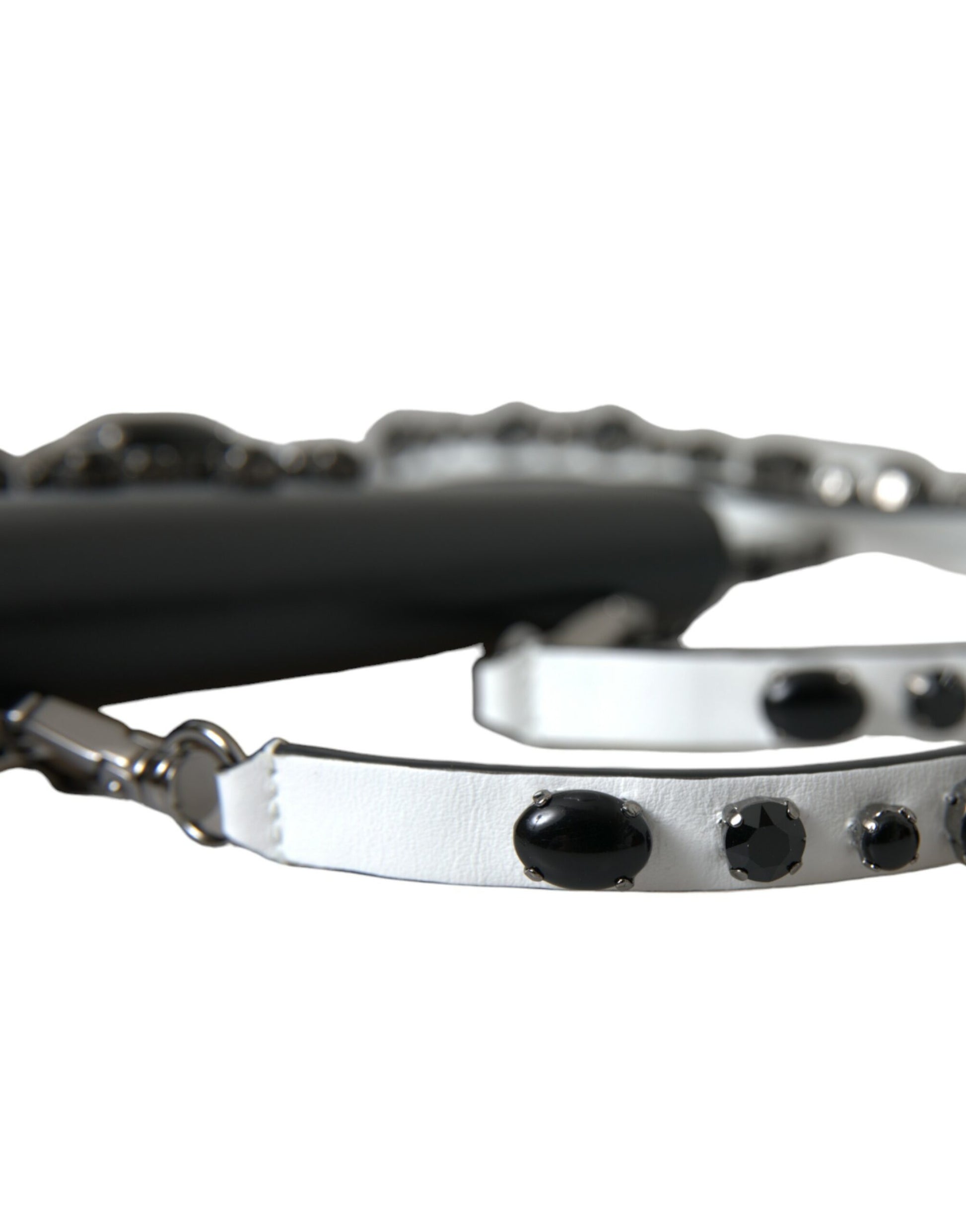 Black White Leather Crystal Embellished Cardholder Wallet