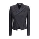 Alexander McQueen’s Double-Breasted Blazer stands out for its short, fitted cut, with pronounced shoulders and a sculpted hem that enhance its architectural shape. Crafted from smooth, matte fabric, it adds a refined touch to the piece. The double-breasted button fastening and peak lapels complete the design, while discreet flap pockets and decorative cuffs add elegant, refined details.