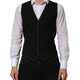 black vest is a refined addition to any formal wardrobe. Expertly tailored from premium wool, it features a sleek silhouette with a button-front closure and adjustable back strap for a perfect fit. Designed to complement suits or dress shirts, this waistcoat embodies the brand’s classic Italian elegance and timeless sophistication.