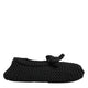 features a soft wool knit upper in classic black, offering a cozy yet sophisticated look. The slip-on design ensures effortless wear, while the rounded toe and subtle logo detailing complete the refined silhouette.