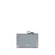 The leather Card holder by Valentino Garavani is crafted from grained calfskin and embellished with the iconic platinum-finish Rockstuds. It features a snap-button closure, a zipped coin compartment, six card slots and two flat pockets, offering a compact and luxurious blend of functionality and signature style.