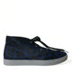 Blue Calfskin Leopard Mid Top Sneakers Shoes
