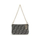 The Baguette Clutch Bag by Fendi, made of denim-effect FF jacquard in shades of dark blue, is an elegant and versatile accessory. The zipper closure is enriched by the zipper pull with the iconic FF motif. The lined interior features a pocket with card slots, while metallic accessories with a gold finish add a touch of luxury. The clutch can be carried by hand, under the arm or cross-body thanks to the short thin chain strap and long leather shoulder strap, both removable. A perfect blend of style and practicality.