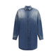 Prada’s oversized denim Shirt Jacket combines denim appeal with a modern, relaxed fit. Featuring a classic collar and front snap closure, it is distinguished by the triangular plaque on the front, an iconic detail that elegantly signs the garment. Perfect for a casual yet sophisticated style.