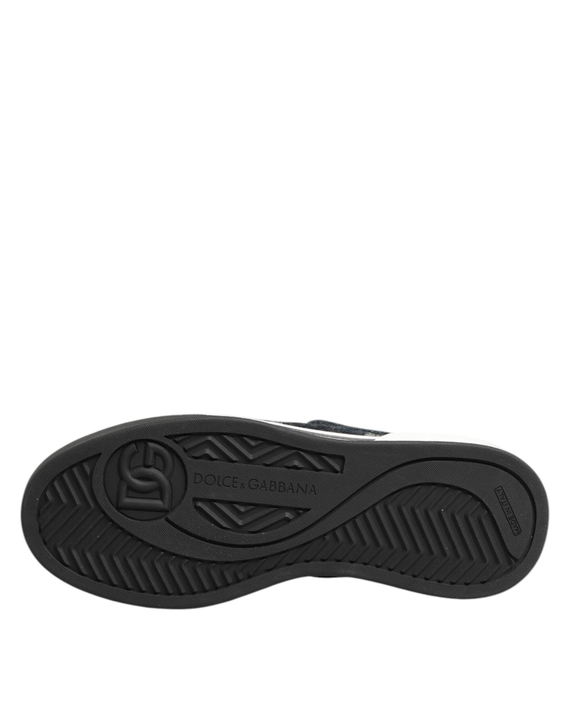 Blue Cotton Denim Logo Low Top Sneakers Shoes