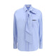 The Shirt by Brunello Cucinelli enhances pure cotton poplin with a refined jewel detail on the chest, adding a subtle yet distinctive touch. The Italian collar, paired with a removable tie-style ribbon, offers elegant versatility, while the button fastening preserves a clean and balanced design. The chest pocket, angular cuffs and rounded hem integrate seamlessly into the silhouette, complemented by the back yoke and back placket that shape the garment with tailored precision.