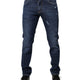 Blue Cotton Logo Print Slim Fit Denim Jeans