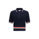 The woven cotton Polo Shirt by Thom Brown stands out for its elegant and sporty design. The ribbed polo shirt with horizontal stripes creates a dynamic and modern visual effect. The front button closure up to the mid-chest allows you to customize your look, while the sleeves with horizontal stripes complete the design with a distinctive detail. The hem with iconic stripes and side buttons add a sophisticated touch, making this polo shirt ideal for a casual yet refined look.