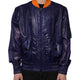Blue Cotton Stretch Full Zip Bomber Jacket