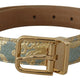 Blue Leather Jacquard Embossed Gold Metal Buckle Belt