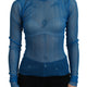 Blue Mesh Turtleneck Long Sleeve Blouse Top