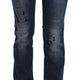 Blue Newspaper Print Low Waist Skinny Denim Pants