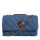 Blue Quilted Denim Leather Crossbody Shoulder Bag