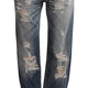 Blue Tattered Mid Waist Straight Denim Cotton Jeans