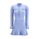 The pearl trim knit mini Dress by Self-Portrait blends softness and structure in a refined yet playful silhouette. Crafted in a stretch knit that gently sculpts the body, the design is illuminated by shimmering faux pearl trims that add a polished, jewel-like accent. A high collar lends elegance, while the flared sleeves introduce movement and a touch of drama. Finished with a button closure down the front, this mini dress highlights a flattering fit-and-flare shape, perfect to elevate with heels from day to evening.