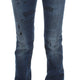 Blue Wash Cotton Blend Slim Fit Bootcut Jeans