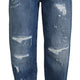 Blue Washed Cotton Tattered Denim Jeans