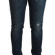 Blue Washed Low Waist Slim Fit Denim Jeans