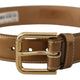 Bronze Calf Leather Gold Logo Waist Buckle Belt