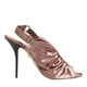 Gorgeous brand new with tags, 100% Authentic Dolce & Gabbana women’s slingback sandals in a luxurious bronze satin. Featuring a ruched front detail, elegant peep toe, and slim stiletto high heel, these sandals are a perfect blend of sophistication and glamour. The elasticized slingback strap ensures a comfortable fit, making them ideal for evening wear or special occasions.